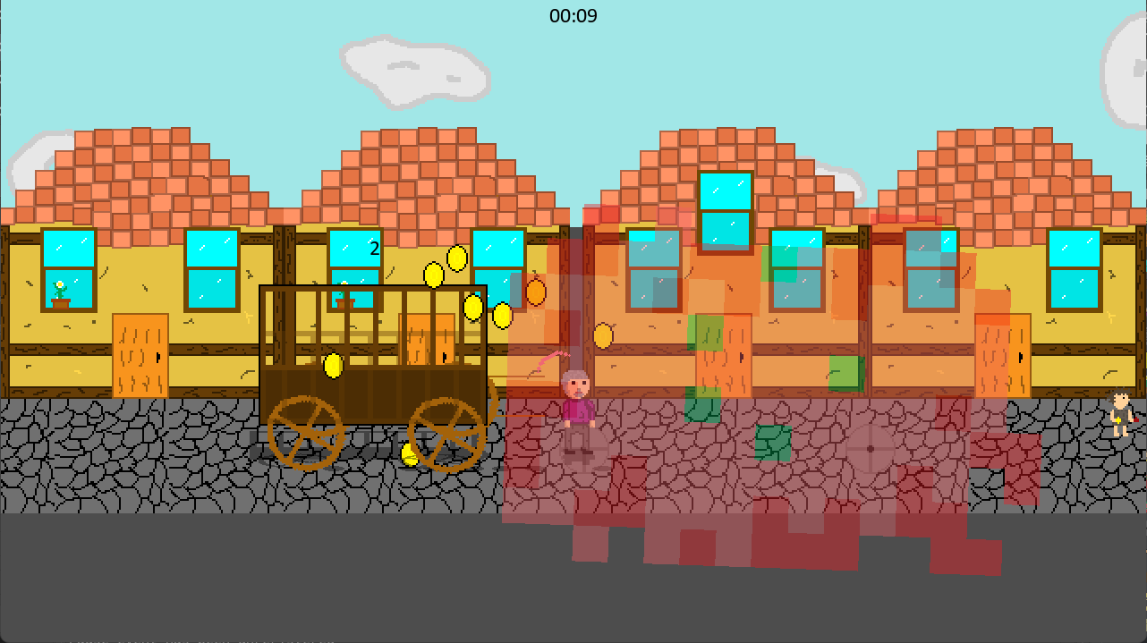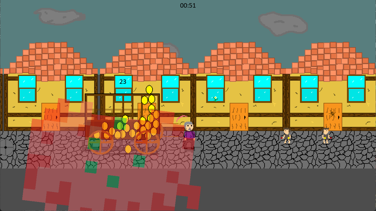 - Knock on doors (Hold LMB) to get the peasants to throw their coins at you